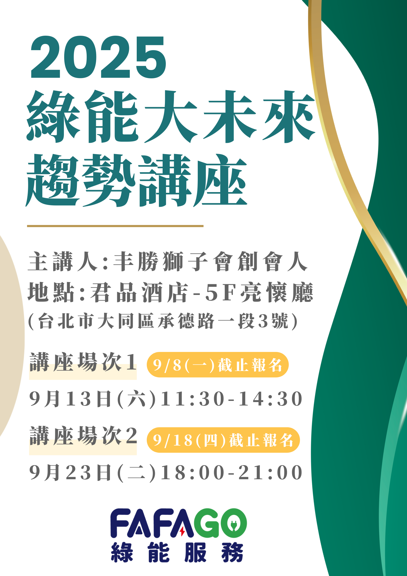 FAFAGO 綠能講座2025.8.25⚡ 綠能浪潮全面啟動! 2025 年最關鍵的趨勢講座 🔑 新能源 ♻️ 永續 🌱 充電樁 🚗⚡ 一次掌握全球脈動,贏在起跑點! 👉 想卡位新商機?加入官方LINE,小幫手立刻幫您報名! @221whlvs(記得加@)閱讀更多 https://fafago.com.tw/wp-content/uploads/2025/08/5.png 2000 1414 famboss888 /wp-content/uploads/2024/09/logo-color.png famboss8882025-08-25 14:17:012025-08-25 14:17:01FAFAGO 綠能講座