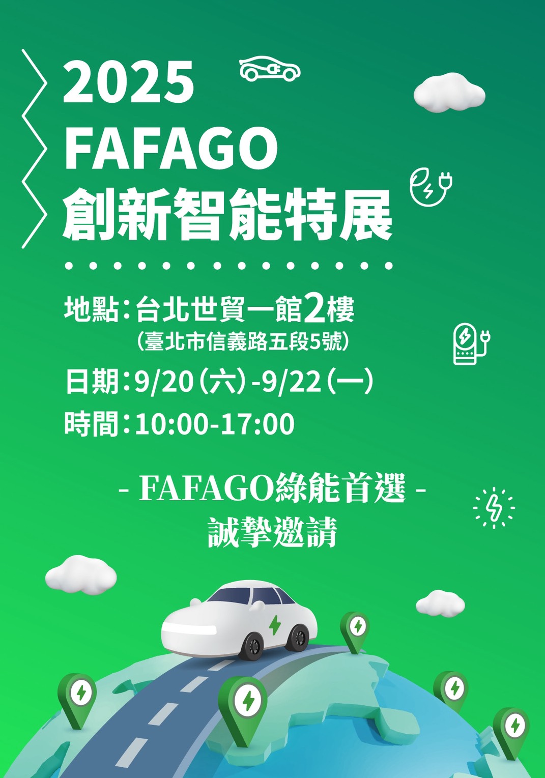 2025 FAFAGO創新智能特展2025.9.9⚡ 綠能首選・FAFAGO誠摯邀請 ⚡ 2025 FAFAGO創新智能特展 9/20-9/22 台北世貿一館2樓 🚘 一站式體驗|綠能 × 智慧 × 未來 💡 打造您的智慧生活藍圖! 🟢 免費入場,快來現場與我們一起探索吧!閱讀更多 https://fafago.com.tw/wp-content/uploads/2025/09/S__13361166.jpg 1529 1071 famboss888 /wp-content/uploads/2024/09/logo-color.png famboss8882025-09-09 13:21:212025-09-09 13:21:212025 FAFAGO創新智能特展
